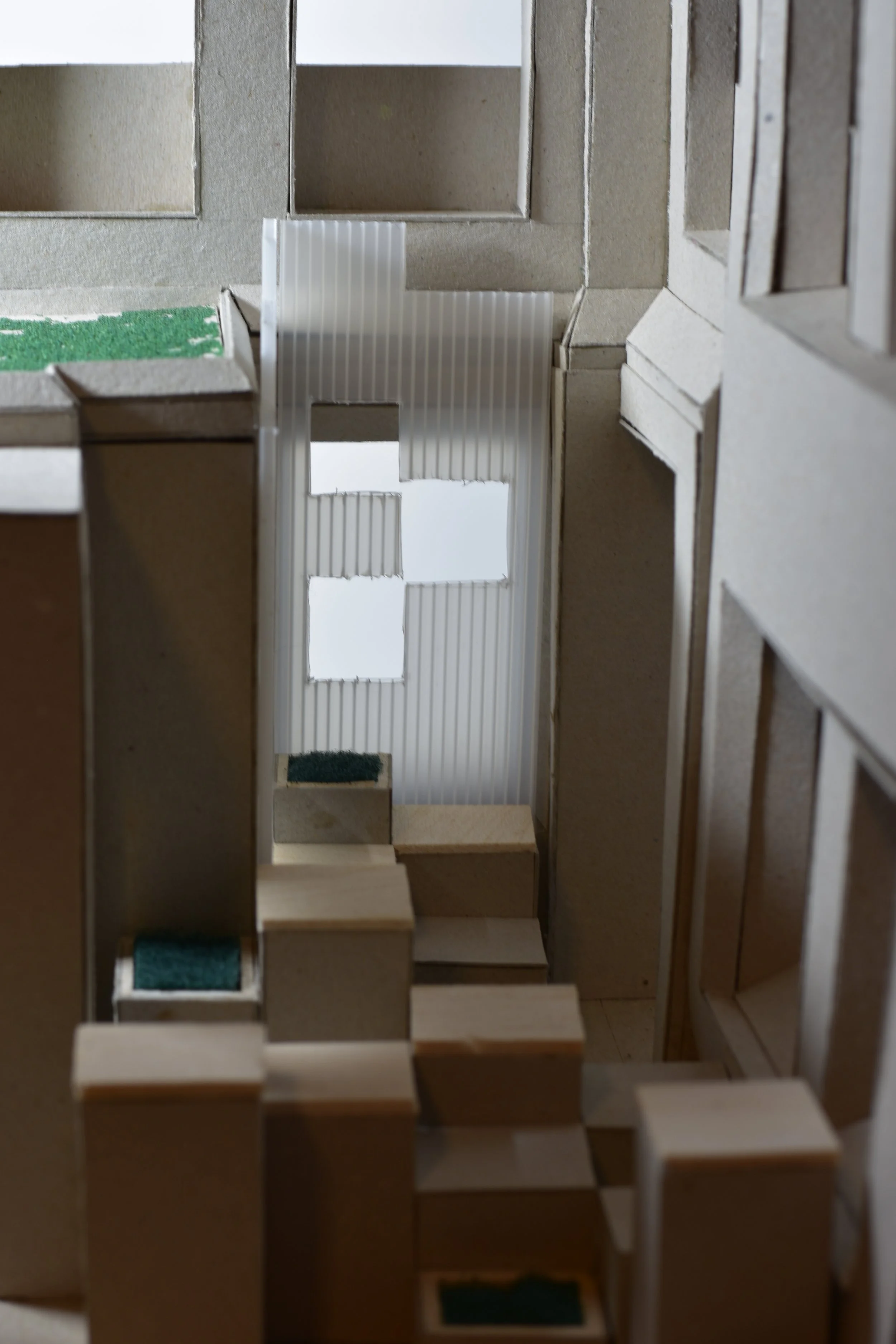 The first project that I have undertook as part of my University course. Its aim was to design Intervention that will be a valuable contribution to the University Building. The final design is an extension of the existing Newcastle University Building that belongs to the Medical students. It is a winter garden/ relaxation area. It consists of blocks, some of which have sitting areas installed, some have flowerpots and some contain books and journals providing a peaceful environment for students to meet/read or socialize.